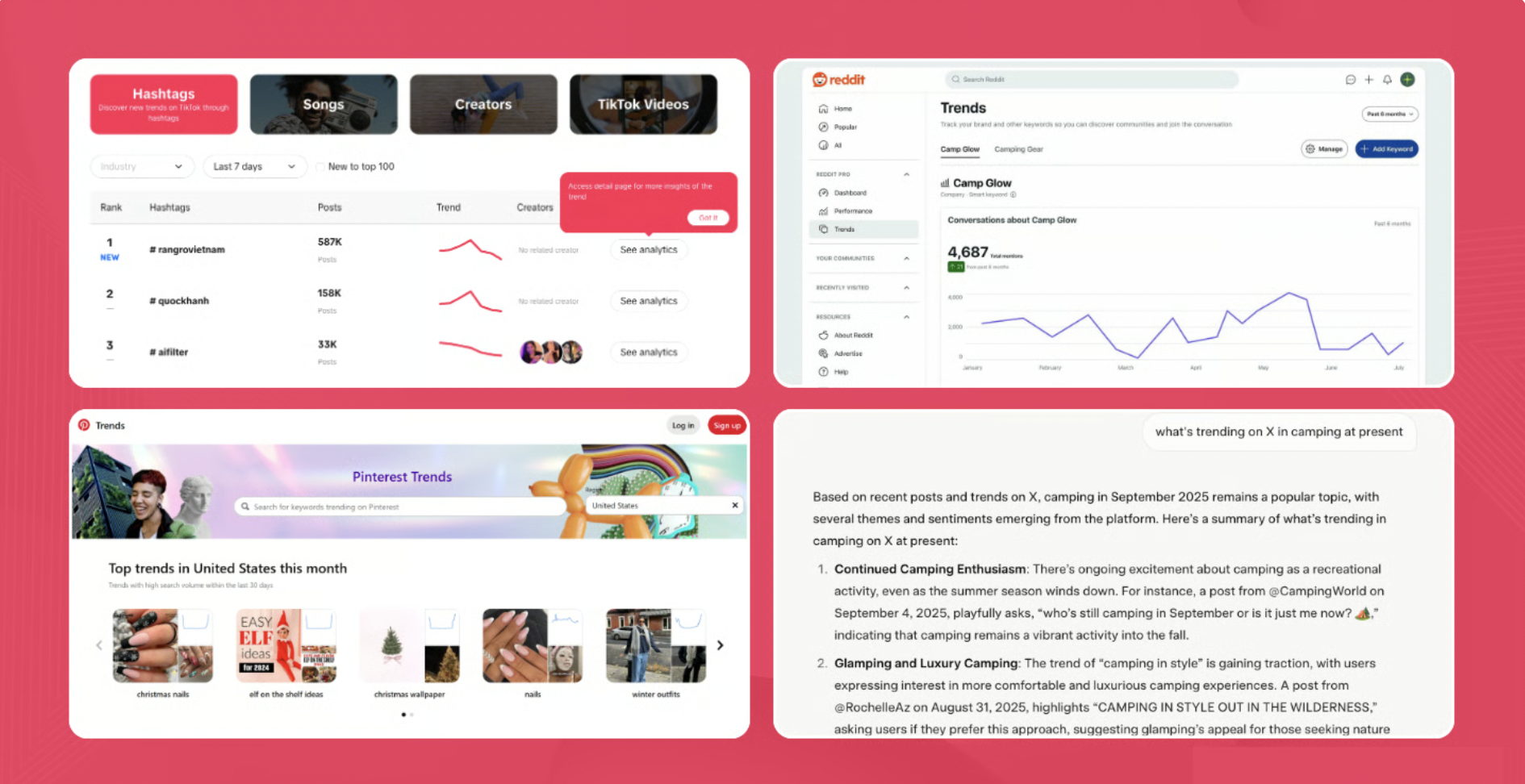 Sau đây là 5 cách nghiên cứu xu hướng theo từng nền tảng, hỗ trợ thương hiệu hiểu rõ hơn về hành vi, nhu cầu và mối quan tâm của người dùng, nhằm xây dựng chiến dịch quảng cáo phù hợp và hiệu quả hơn.