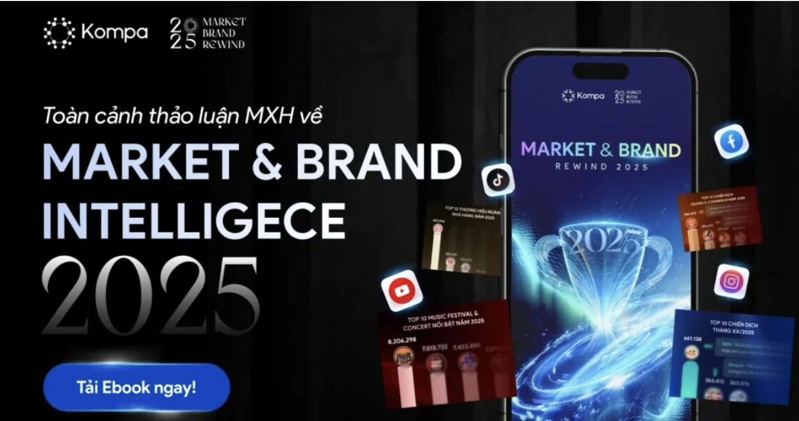 Đó là lý do “Market & Brand Rewind 2025” của Kompa ra đời – một ấn phẩm tổng hợp và phân tích các chuyển động nổi bật trên mạng xã hội, giúp marketer và thương hiệu nắm nhanh bức tranh toàn cảnh, nhìn rõ “Ai – cái gì – vì sao” đang tạo nên làn sóng, từ đó rút ra góc nhìn cho kế hoạch năm mới.